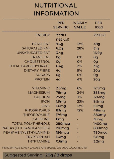 We provide the highest quality, pure cacao butter so you can feel the love too! We personally source our beans from Peru (see our farm here) to find the most potent, therapeutic & flavour rich cacao possible.